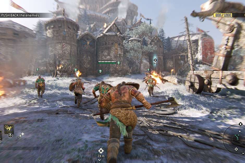 Las mecánicas de combate de For Honor involucran el tipo de decisión complicada que va mucho más allá de la simplicidad del concepto del juego. Para no hacer del título algo excesivamente repetitivo, como aquellos que te dejan con tendinitis aguda en los pulgares de las manos de tanto apretar el mismo botón en velocidades insanas, los productores han adaptado un nuevo sistema: puedes dar golpes con el analógico derecho mientras te mueves con el otro; prendes uno de los gatillos para aumentar la fuerza de los ataques, usas las espadas en el momento correcto para esquivarte y defenderte.