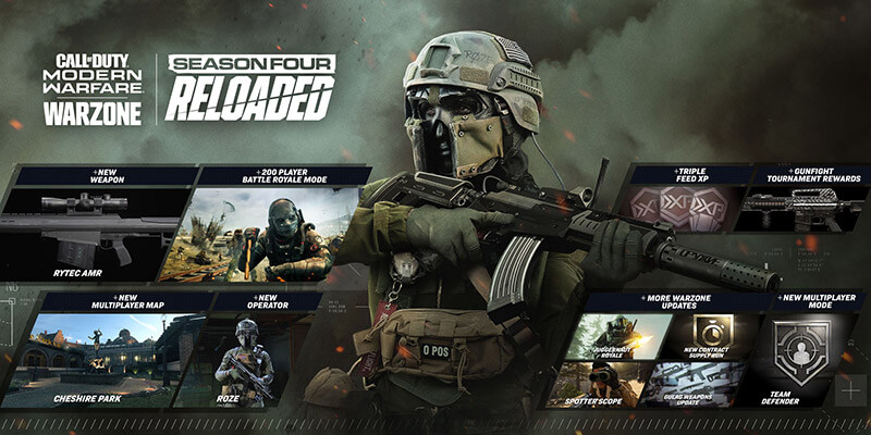 Vale lembrar que o tamanho de download da Temporada Quatro Recarregada é de aproximadamente 36 GB para quem tem a versão completa de Modern Warfare. Aqueles que jogam em consoles, deverão instalar um download secundário de 3,5 GB e reiniciar o jogo para poder acessar o Multiplayer.