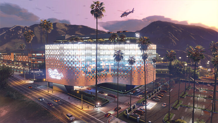 Depois de muito mistério e muitos rumores, finalmente veremos o que tem naquele novo edifício com a placa “inauguração em breve” aparecendo em Vinewood Hills, ali com as montanhas Tataviam de fundo, quando você passa pela Freeway de Los Santos. Trata-se do Cassino e Resort Diamond, que já tem site oficial real e abre suas portas em GTA Online nesta terça, dia 23 de julho.