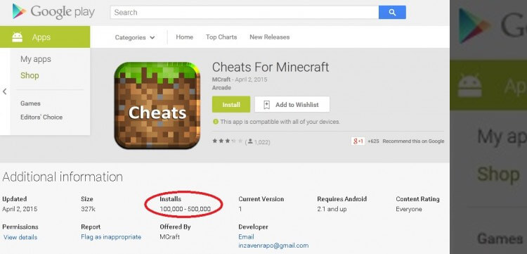 Os cibercriminosos também realizam golpes por meio de aplicativos scareware. A ESET descobriu 30 apps do Minecraft no Google Play que fingiam ser cheats para o jogo. Mas, quando executados, alegavam que a máquina do usuário tinha um vírus que só podia ser removido ativando uma assinatura Premium SMS, que custava € 4,80 por semana.