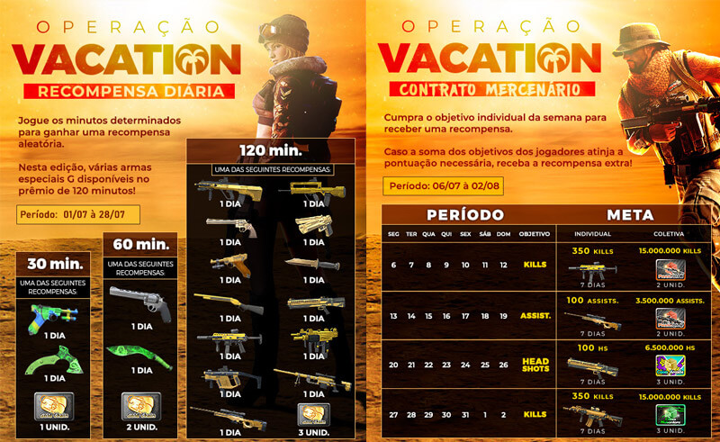 As férias de julho inexistiram neste ano de pandemia mundial, mas Point Blank não deixou de realizar a sua Operação Vacations desta época do ano. A Ongame Entretenimento estreou a Operação Vacation, que vai até 31 de julho em Point Blank, com diversas tarefas com recompensas diárias e semanais. Além disso, o Mercado Raro também retorna ao jogo e estará à disposição dos jogadores.