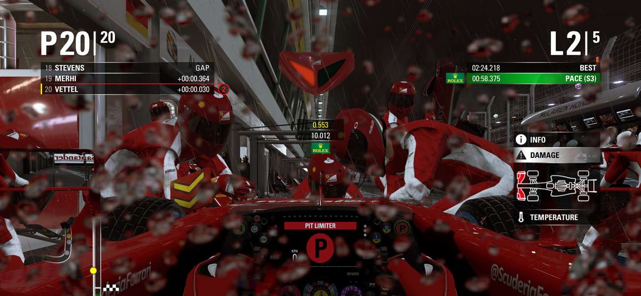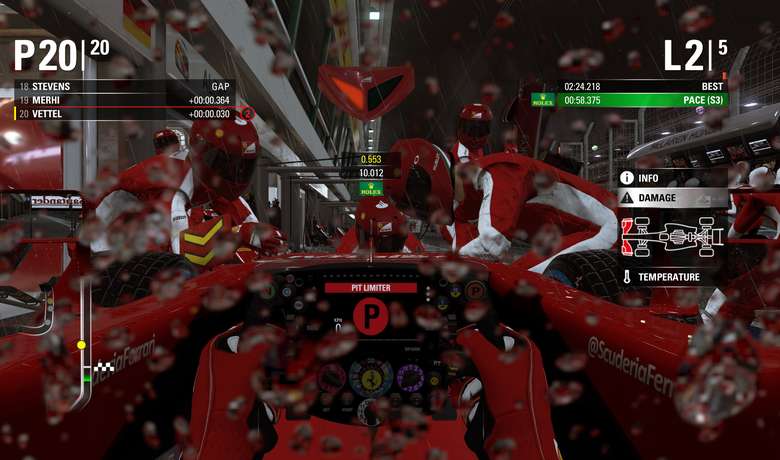 Isso tudo para introduzir o Resource Point System, uma espécie de pontuação que você vai acumulando ao longo de cada corrida para que, junto de seus engenheiros, troque por melhorias no seu carro. É um aspecto divertido, ainda que meio irreal (um carro da Toro Rosso não tem a mesma capacidade de, digamos, um carro da Ferrari ou McLaren). Não que isso atrapalhe a corrida em si – dá para ganhar a mais dura das corridas com a mais fraca das equipes -, mas foi meio estranho ver que grandes e pequenas montadoras possuem mais ou menos a mesma capacidade de construção veicular.